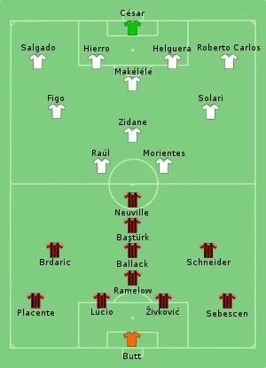 La acel meci au participat 52000 de spectatori. Antrenorul de la acea vreme a lui Real Madrid a fost Vicente Del Bosque, iar antrenorul celor de la Bayer 04 Leverkusen a fost pe atunci Klaus Toppmöller. Golul lui Bayer 04 Leverkusen a fost marcat de Lúcio din Brazilia.