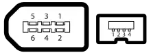 Cablul de legătură este format din 6 fire de cupru cu următoarele destinații: 2 fire pentru alimentarea din calculator a perifericelor cu tensiune cuprinsă între 8V și 40V, la un curent de până la 1,5A, 4 fire grupate în două perechi de semnale, cu câte două fire răsucite și ecranate separat, denumite Signal Pair A și Signal Pair B. Ambele perechi de conductoare, împreună cu cele două conductoare de alimentare sunt cuprinse într-un cablu ecranat.[7]