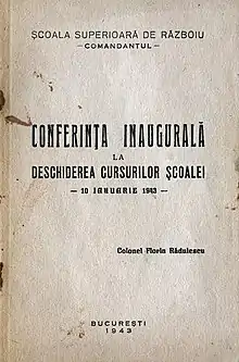 Promoția 33 (1925 - 1927) a Școlii Superioare de Război din care a făcut parte Florin Rădulescu.[26]