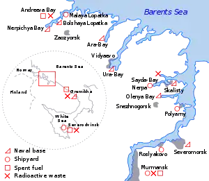 În prezent, din cauza radiațiilor, submarinele și reactorul atomic învechit prezintă un pericol permanent pentru ecosistemul din regiunea din nordul Asiei și Europei. După relatările agenției de presă ruse RIA Novosti, în anul 2006 au fost casate deja 145 de submarine atomice. Deoarece cheltuielile de îndepărtare a rezidurilor radioactive sunt apreciate la mai multe miliarde de dolari, o serie de țări occidentale au anunțat că vor suporta parțial aceste cheltuieli, Germania fiind statul care va aloca cele mai multe fonduri în acest scop.