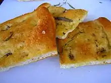 Focaccia este un produs de panificație specific bucătăriei italiene,[1] de obicei conținând ulei de măsline și ierburi aromatice și consumată drept aperitiv. Pe vremuri, focaccia era servită de sărbători. Acum, focaccia este servită ca un aliment obișnuit.[2][3][4][5]