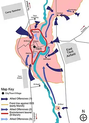 În 2014, Forța Quds a fost dislocată în Irak pentru a conduce acțiunea iraniană împotriva ISIL. Iranul a trimis trei batalioane Quds pentru a ajuta guvernul irakian să respingă ofensiva ISIS din nordul Irakului în 2014[52]. Peste 40 de ofițeri au participat la cea de-a doua bătălie de la Tikrit, inclusiv liderul forței, gen. Qasem Soleimani, care a jucat un rol principal în operațiune.