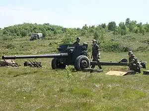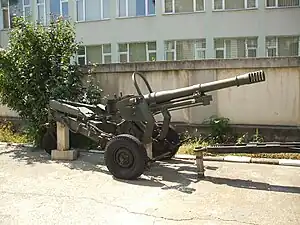 | M82 | ![]() | Obuzier de 130mm | 75[38] | 72 de piese de vânzare.[8][37] Construit sub licență după obuzierul chinez Type 59-1, care la rândul său era o copie după obuzierul sovietic M-46. Romania a mai produs și obuzierul de munte de 76mm și un mortar de 120mm sub numele de M82. | |
