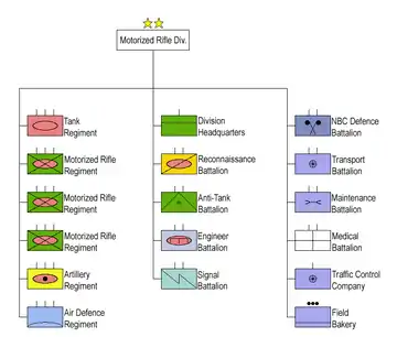 | Ramură | Infanterie, Artilerie, Tancuri, Rachete și artilerie antiaeriană, Vânători de munte, Parașutiști, Geniu, Structuri de comunicații și informatică, Unități de apărare NBC, Poliție militară, Administrație/ Intendență, Forțe pentru Operații Speciale (FOS) |