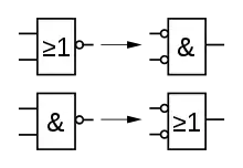 O altă formă a legilor lui De Morgan este următoarea, așa cum se vede în figura din dreapta.