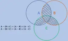 În teoria mulțimilor și algebra booleană, acestea se scriu formal ca