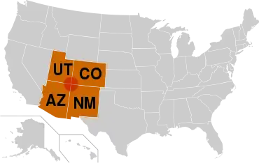 Numit dupăFour Corners[*][[Four Corners (quadripoint in the United States, between Utah, Colorado, New Mexico and Arizona)|]]