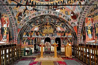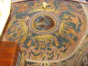 Se știe că uniația a ales să facă o diferențiere de cultul greco-oriental în ce privește decorarea interioarelor de biserici. Nefiind un fenomen iconoclast în sine, greco-catolicii și-au zugrăvit lăcașurile nou ridicate foarte simplu. Spre deosebire de acestea, noile biserici construite de ortodocși, după anul 1780, prezintă o pictură murală foarte densă, cu un material grafic bogat, care respectă în general tematica și maniera de reprezentare a scenelor după modelele create în sudul Transilvaniei, în Rășinari, Feisa, Brașov, Orăștie, Alba Iulia, de școlile de zugravi ce s-au format în centrele de artă de inspirație brâncovenească.[36]