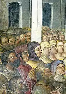 ![]() Petrarca între Francisc I de Carrara și Fina Buzzaccarini (detaliu din „Miracolele lui Hristos” de Giusto de' Menabuoi, Domul din Padova) | |