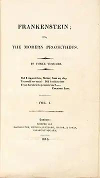 Frankenstein sau un Prometheus modern este un roman al scriitoarei britanice Mary Shelley, publicat prima oară în anul 1818. Se presupune că scriitoarea s-a inspirat la crearea monstrului din roman după numele cetății Frankenstein. Romanul relatează viața tânărului elvețian Victor Frankenstein, care studiază la universitatea renumită din Ingolstadt și care reușește să realizeze un om artificial.
