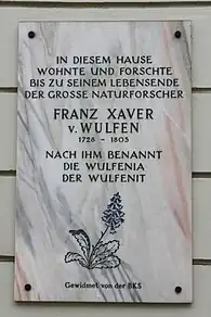 - O stradă în Klagenfurt, Wulfengasse, este denumită după el.[16]
