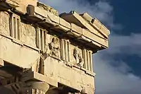 Detaliu din friza Partenonului, compusă din triglife și metope