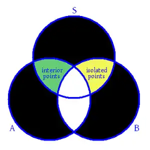 - mulțimea punctelor astfel încât orice vecinătate a include cel puțin un punct al S și cel puțin un punct care nu este inclus în S: .
