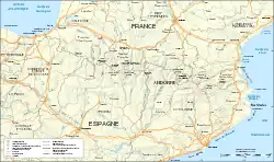 Frontiera între Franța și Spania a fost inițial trasată în 1659. Separă Franța de Spania.