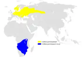 | Arealul. Arealul de reproducere (oaspete de vară) Cartierele de iernare | |
