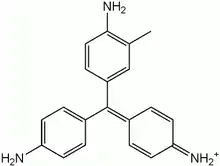 Sinteza sa este aproape identică cu cea a parafucsinei cu deosebirea ca are loc condensarea a 2 molecule de toluidină cu o moleculă de anilină. Fucsina este un colorant roșu solubil în apă, fiind constituentul principal al reactivului Schiff. Este folosită drept colorant în bacteriologie, fiind de asemenea un bun colorant pentru mătase și lână, dar și pentru bumbac după mordansare cu tanin.