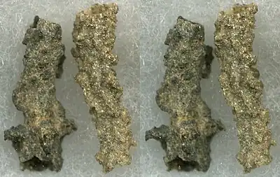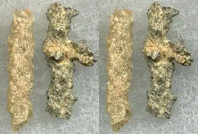 | Două specimene de fulgurit din deșertul Sahara.[1] |