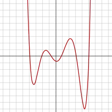 Deoarece o funcție de gradul al șaselea este definită de un polinom de grad par, are aceeași limită infinită atunci când argumentul tinde la infinitul pozitiv sau negativ. Dacă a este pozitiv, atunci funcția crește la infinit la ambele capete; și astfel funcția are un minim global. La fel, dacă a este negativ, ea scade la infinit și are un maxim global.