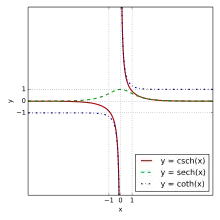 - Cosecanta hiperbolică, pentru x ≠ 0: