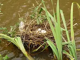 Locurile preferate de cuibărire sunt bazinele acvatice bogate în vegetație. În iazurile și albiile mici cuibărește de obicei o singură pereche, în cele mari - mai multe perechi, cuiburile fiind amplasate la 70-100 m unul de altul, cel puțin - la 25 de metri.