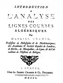 - 1750: Introduction à l'analyse des lignes courbes algébriques, tratat în care a rezumat, completat și explicat, prin numeroase exemple, toate cercetările anterioare din domeniul curbelor algebrice, studiind lucrările tuturor înaintașilor