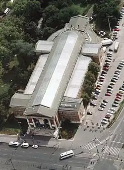 Clădirea este în formă de bazilică. Fațada clădirii conține un portic mare cu șase coloane. Mozaicul de pe frontonul triunghiular, care îl înfățișează pe Sf. Ștefan, patron al artelor plastice, a fost adăugat în 1938 și finalizat în 1941. În spatele porticului se află o frescă triptic realizată de Lajos Deák Ébner, care a denumit cele trei părți, respectiv Începuturile sculpturii, Originea artei și Originile picturii.