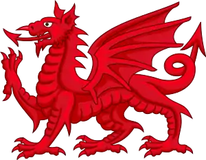 - Drapelul Țării Galilor (Y Ddraig Goch) - Steagul încorporează dragonul roșu, un simbol popular al Țării Galilor și al galezilor, însoțite de culorile roșu, verde și alb, caracteristice dinastiei Tudor. A fost folosit de către Henric al VII-lea al Angliei în timpul Bătăliei de la Bosworth în 1485, înainte de a fi dus în Catedrala Saint Paul din Londra. Dragonul roșu a fost apoi adăugat pe stema regală a familiei pentru a reprezenta originea galeză a acesteia. Drapelul a fost recunoscut pentru prima dată în mod oficial ca reprezentând Țara Galilor în 1959. Ca urmare a faptului că drapelul Regatului Unit nu prezintă nici un simbol al galezilor, drapelul acestora a căpătat o mare popularitate;