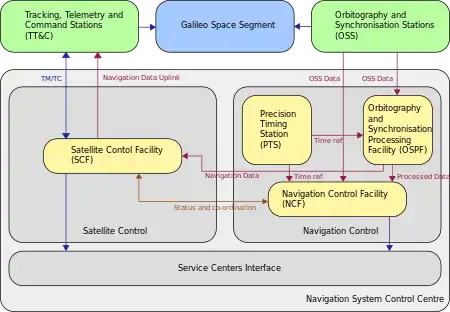 - SCCF (Spacecraft & Constellation Control Facility), care efectuează monitorizarea și controlul on-line a sateliților pentru operațiunile de rutină și critice.