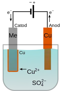 - polul negativ unde se află metalul care urmează să fie acoperit cu un strat provenit din metalul de la anod