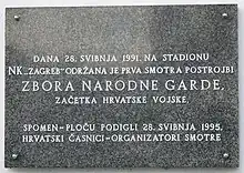 Prima brigadă a ZNG a fost prezentată publicului croat într-o ceremonie specială, desfășurată pe 28 mai 1991, care a constat într-un marș, în înmânarea drapelului croat și în depunerea jurământului pe stadionul echipei NK Zagreb, situat pe strada Kranjčevićeva din capitala croată. Astăzi, această zi este celebrată ca Ziua Forțelor Armate Croate.
