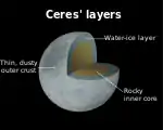 Aplatizarea lui Ceres este în concordanță cu un corp diferențiat, un nucleu de rocă acoperit cu o manta de gheață.[4]
