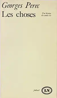 În 1962, Perec schițează un nou roman, al cărui titlu se va schimba în timp de mai multe ori: Banda magnetică, Marea aventură, pentru a deveni în final Lucrurile, titlu sub care va fi publicat la Julliard, în 1965, obținând Premiul Renaudot. Însă volumele următoare, Care motoretă cu ghidon cromat din fundul curții ? (1966) și Un om care doarme (1967) suscită puține ecouri, în pofida originalității, a valorii lor literare și a noutății concepției lor estetice.