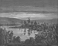 - Episodul selecției oștenilor prin încercarea bǎutului apei din izvor este menționat în Coran în Sura 2 Al Baqara (Vaca), și se referă la Talut, care corespunde de obicei figurii regelui biblic Saul.(Coran, II, 249) [7] Ca si Ghedeon, oastea lui Talut se constituie, în cele din urmă, dintr-un număr mic de oșteni.