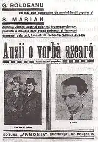 | Auzii o vorbă aseară | stil popular | Sandu Marian | 1937 | Dorel Livianu, Petre Stamate |