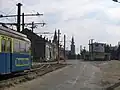 Capătul liniei de tramvai Arad-Ghioroc. Pe fundal se văd bisericile din sat