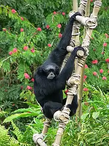Cu ajutorul brațelor lungi gibonii stau atârnați și se deplasează legănându-se prin copacii din păduri. În timp ce se deplasează, își folosesc mișcarea oscilantă a corpului pentru a se împinge înainte.