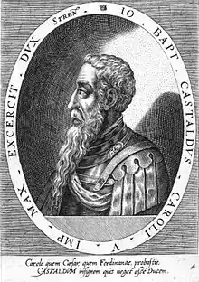 Castaldo s-a aflat în serviciul militar al Sfântului Imperiu Roman. El a luptat în mai multe războaie duse de împăratul Carol al V-lea. În 1551, din ordinul lui Carol al V-lea, a plecat în Transilvania, luptând împotriva turcilor conduși de sultanul Soliman I. După ce trupele imperiale de sub comanda generalului Castaldo au pătruns în Transilvania, turcii au reacționat atacând Banatul.[2]