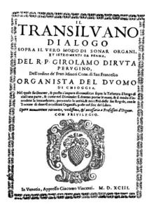 Cea mai faimoasă lucrare a lui Diruta este Il Transilvano, tratat în două părți apărute la distanță de mulți ani (1593, 1609-10), dedicat învățării artei de a cânta la instrumente cu claviatură. Lucrarea este prezentată sub forma unui dialog între autor și Istvan de Joìka, un diplomat din Transilvania, care se află într-o misiune în Italia. Acesta este primul tratat care evidențiază o diferență între tehnica de orgă și cea a altor instrumente „da penna”, mai exact clavecin și spinet. Prima parte a tratatului se concentrează asupra digitației și ornamentelor, exemplificate în unele fragmente muzicale ale autorului și ale altor compozitori precum Claudio Merulo, Andrea și Giovanni Gabrieli, Luzzasco Luzzaschi, Antonio Romanini, Paolo Quagliati, Vincenzo Bellavere, Giuseppe Guami. În a doua parte este expusă arta începeerii pieselor polifonice și teoria și practica contrapunctică. Apoi se dau exemple de cercetări și versete de organisti care urmează să fie alternate cu imnuri și Magnificat, proprii și ale altor compozitor (Luzzasco Luzzaschi, Adriano Banchieri, Gabriele Fattorini), precum și o explicație privind modul de utilizare a registrelor orgii.