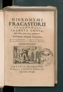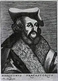 Girolamo Fracastoro (n. 1478, Verona, Italia – d. , Affi, Veneto, Italia) a fost medic, poet și umanist italian, considerat părintele patologiei infecțioase și al medicinei comparate[4]. A rămas celebru pentru teoria sa privind răspândirea bolilor infecțioase și a introdus termenul de sifilis.