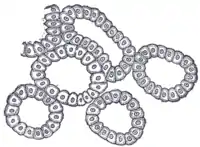 Glanda lacrimală este o glandă compusă tubuloacinoasă formată din numeroși lobuli între care se interpune țesut conjunctiv lax.[5] În secțiuni transversale, unitățile secretorii ale glandei apar ca o structură inelară, așa-numitul acin.[1] Un acin este format dintr-un strat de celule mioepiteliale așezat pe o membrană bazală și mai multe celule secretoare columnare dispuse spre interior. Contracția celulelor mioepiteliale are ca rezultat evacuarea secrețiilor în tubulii și ductele de drenaj.[5]
