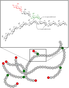 În acest caz, enzima denumită glicogen-fosforilază clivează legătura dintre un rest de glucoză terminală și o ramificație a glicogenului, prin substituția unei grupe fosforil dintr-o legătură de tipul α[1→4].[1]