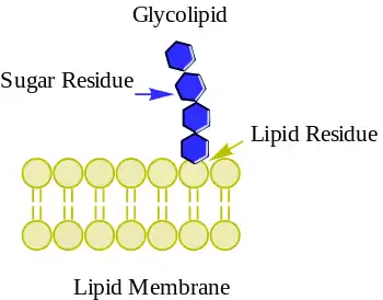 Caracteristica esențială a unei glicolipide este prezența unei monozaharide sau oligozaharide legate de o fracțiune lipidică. Cele mai frecvente lipide din membranele celulare sunt glicerolipidele și sfingolipidele, care au o structură bazată pe glicerol, respectiv de sfingozină. Acizii grași sunt conectați la această structură, astfel încât lipidele, per ansamblu, prezintă un cap polar și o coadă nepolară. Bistratul lipidic al membranei celulare este format din două straturi de lipide, cu suprafețele interioare și exterioare ale membranei alcătuite din grupurile capului polar, iar partea interioară a membranei este alcătuită din cozile nepolare ale acizilor grași.