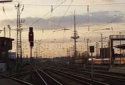 Cale ferată în zona Bremen, cu diferite elemente de comunicații și semnalizare