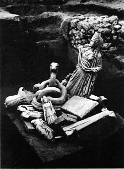 Descoperirea arheologică este cu atât mai importantă cu cât, printre cele 24 de statui descoperite, se numără și una unică, pe plan mondial: șarpele Glykon, unica statuie de cult a acestei divinități cunoscută până acum în întreg Imperiul Roman și a cărei dimensiuni și măiestrie de realizare sunt impresionante. De studiul reprezentărilor sculpturale ale divinităților s-a ocupat cercetătorul istoric constănțean Zaharia Covacef.