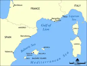 Pe malul golfului Lion se află Camargue, singura regiune mlăștinoasă naturală de pe țărmul Mării Mediterane, vestită pentru hergheliile de cai și pentru turmele de vite crescute aici.