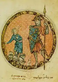 David si Goliat (ilustrație evreiască din sec.XIII, Franța)