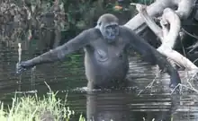 Următoarele observații au fost făcute de o echipă condusă de Thomas Breuer de la Wildlife Conservation Society în septembrie 2005. Acum se știe că gorilele folosesc unelte în sălbăticie. O femelă de gorilă din Parcul Național Nouabalé-Ndoki din Republica Congo a fost înregistrată folosind un băț ca și cum ar fi măsurat adâncimea apei în timp ce traversa o mlaștină. O a doua femelă a fost văzută folosind un ciot de copac ca pod și, de asemenea, ca suport în timp ce pescuia în mlaștină. Aceasta înseamnă că toate marile maimuțe sunt acum cunoscute că folosesc unelte.[55]