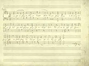 Unsern Kaiser, unser Land ! Mächtig durch des Glaubens Stütze, Führt er uns mit weiser Hand ! Laßt uns seiner Väter Krone Schirmen wider jeden Feind ! |: Innig bleibt mit Habsburgs Throne Österreichs Geschick vereint ! :| |