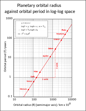 unde m = k este panta dreptei, iar b = log a este punctul de interceptare.[1]