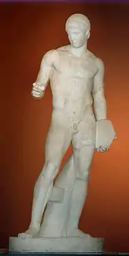 Sculptură este dusă la perfecțiune în Discobolul lui Myron din Eleutherai, care îmbină atitudini succesive ntr-un instantaneu al mișcării, ajungându-se la un realism superior.